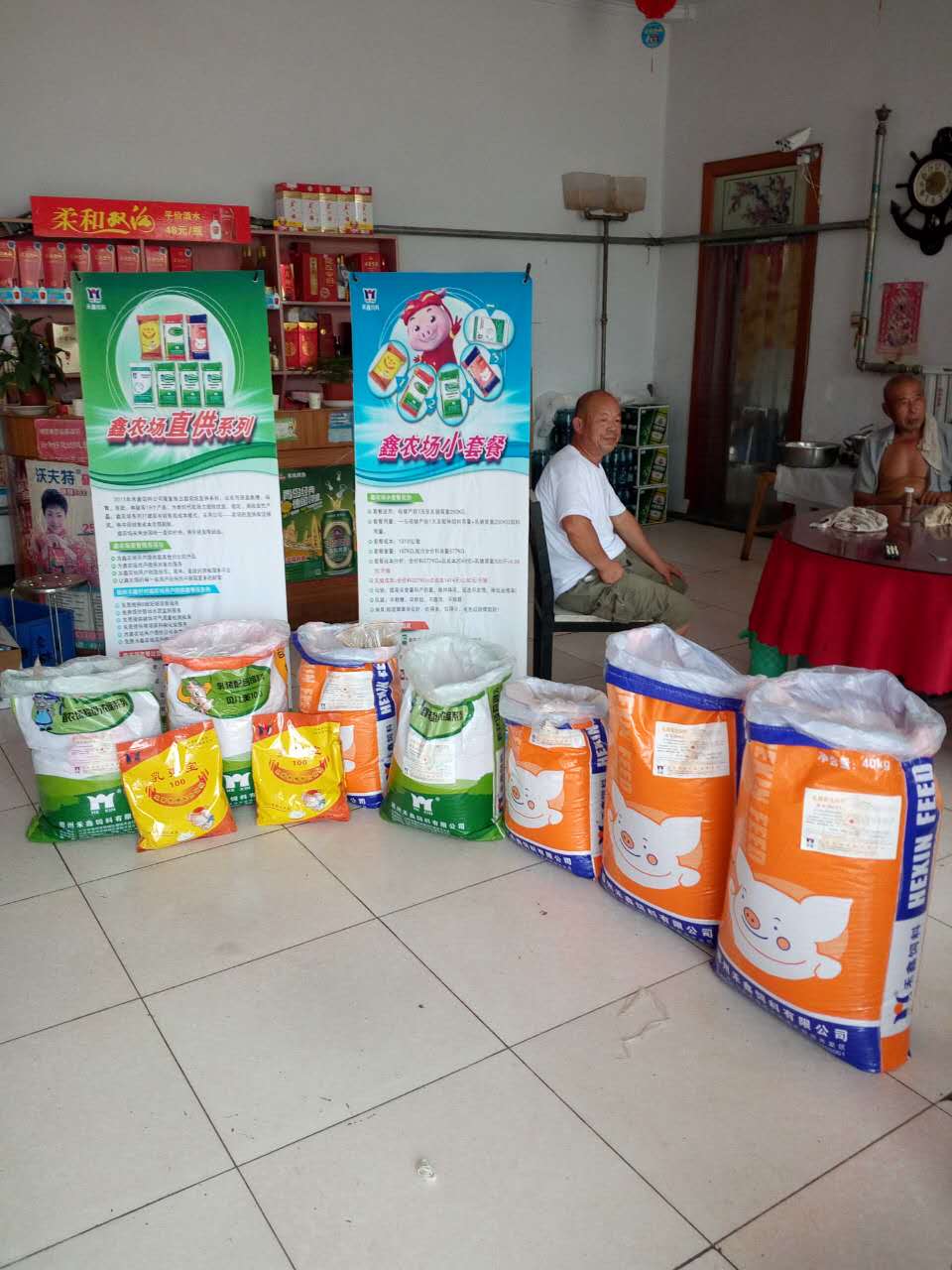 禾鑫飼料產(chǎn)品展示。 張 張總給養殖戶(hù)朋友們現場(chǎng)講解